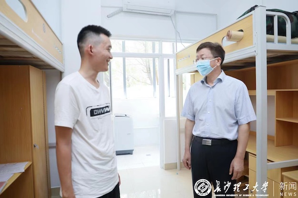 在金盆岭校区,付宏渊一行走访了各迎新报到点和学生宿舍,仔细询问新生报到和入住情况,实地检查宿舍提质改造进展,看望慰问迎新工作人员和学生志愿者并亲切叮嘱正确佩戴口罩,做好个人防护,为新生报到提供优质周到的服务。