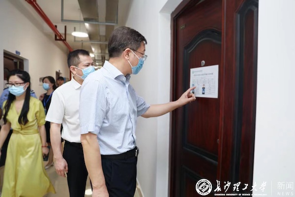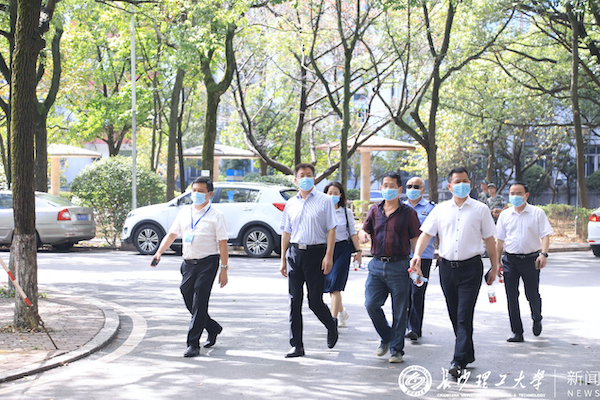 8月27日上午,校党委书记付宏渊,在校党委委员、宣传部部长方琼和党政办、研究与督查室、学工部(处)、保卫处、后勤中心等相关部门负责人的陪同下,深入云塘校区和金盆岭校区开展迎新工作检查。