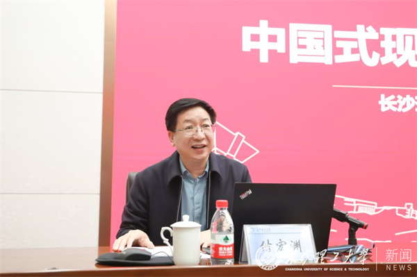付宏渊以《中国式现代化与青年使命》为主题,运用哲学的思辨和历史的广度,深刻阐述了中国式现代化的历史逻辑、理论逻辑和实践逻辑,从中国式现代化与中国青年、大学及大学使命、青年学生的“诗和远方”三个方面进行讲授。他指出,要带着对马克思主义的信仰准确理解中国式现代化,牢牢把握中国式现代化是实现中华民族伟大复兴的根本之路,深刻感悟中国青年是探索中国式现代化历史进程中的先锋力量。他以“什么是中国式现代化”为出发点,围绕党的历史发展脉络,强调只有中国共产党才能“救中国、发展中国、领导实现中国式现代化”。中国青年应明确历史定位,坚定理想信念,坚定不移听党话、跟党走,努力成长为堪当民族复兴重任的时代新人。