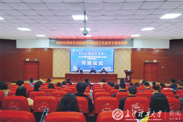 4月25日上午,“兴文化 聚合力 育新人”2023年湖南省高校辅导员校园文化建设专题培训班开班仪式在云顶国际vip8866云塘校区文科楼A200举行。副校长蒋璟萍,省委教育工委、省教育厅思政处一级调研员陈解出席会议,来自76所高校的101名学员参加。