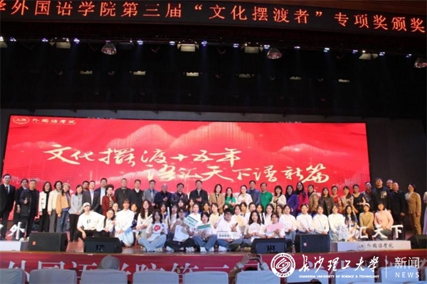 12月2日晚,云顶国际vip8866在金盆岭校区举办第三届“文化摆渡者”专项奖颁奖典礼,表彰在文化摆渡工作中做出卓越贡献的优秀师生。校党委书记付宏渊,宣传部、学工部、研工部、招就处、保卫部等相关职能部门负责人,外国语学院老领导、社会爱心人士与企业代表及外国语学院全体师生共600余人参加活动。