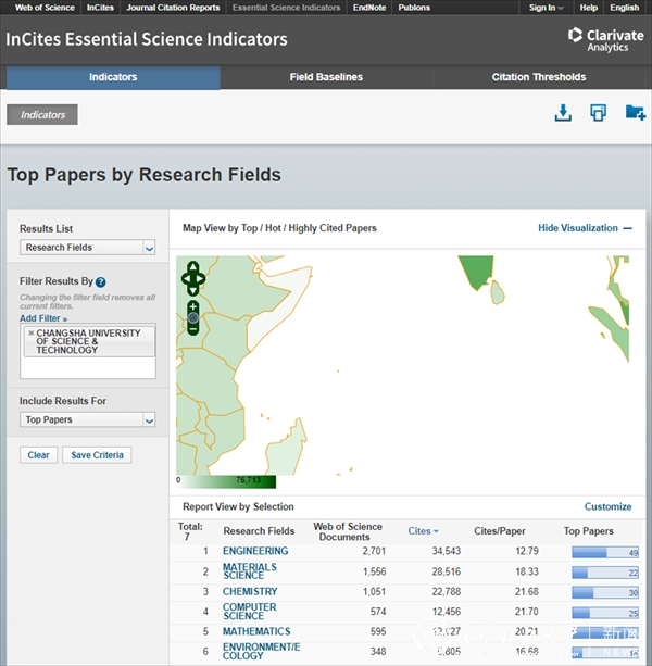 云顶国际vip8866工程学、材料科学、化学、计算机科学、数学、环境/生态学6个学科影响力进入ESI全球排名前1%。
