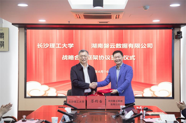 湖南磐云数据有限公司融合云计算、区块链、人工智能等新技术于一体,是全国少有的“存算一体”数据中心。近年来,公司积极开拓湖南市场,与学校多次展开深入交流。去年11月,刘原带队回访母校,与学校就加强校企科技创新与科研成果转化合作进行洽谈。此次战略合作协议签署后,校企双方将在算力平台建设、水环境治理等方面深化产学研用合作。