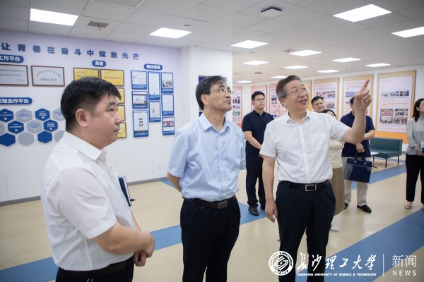 在湘江卓越工程师学院大学生创新创业园,李永军一行实地参观了学院实训室、科创空间、创新创业教育展厅及创业园等,听取了学校在创新创业、拔尖创新人才培养等方面的情况汇报。