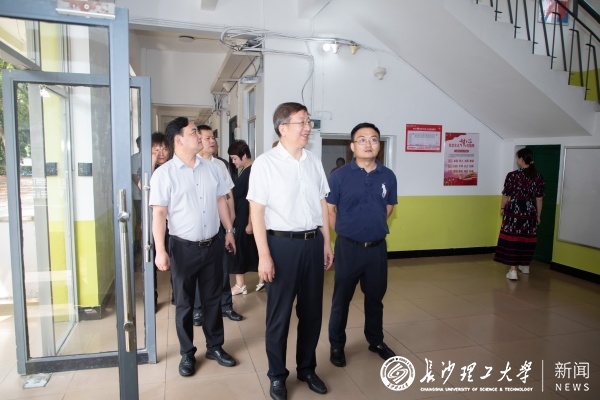 校领导实地查看了宿舍维修改造和环境卫生状况,详细询问新生住宿相关事宜;在教学楼和实验楼,了解开学条件保障及教学设施设备准备情况;在食堂、超市,重点检查了食品商品储存、加工制作流程及就餐环境;在校门周边区域,查看了金盆岭校区西北门新建道路及周边通行状况、校内交通引导措施。