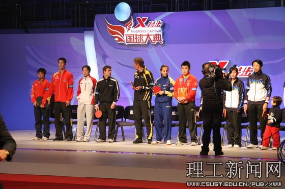 9日举行的是“2008国球大典”乒乓嘉年华活动,云顶国际vip8866党委副书记、副校长洪源渤就座于主席台。乒乓嘉年华是一个体育、娱乐相结合的节目,由湖南卫视主持人汪涵和1985年、1987年连续两届世乒赛男子单打冠军江嘉良主持,现场气氛热烈。观众们不仅一睹了乒乓冠军们的风采,也感受到了乒乓球除比赛之外的乐趣。各路民间高手纷纷展现身手,单挑正规军:一位年仅4岁、却已有两年球龄的小女孩与北京奥运会女单冠军张怡宁对决,整个场面滑稽幽默;“怪拍高手”喻小力用异型球拍“五雷轰顶锤”与希腊球星格林卡的“十面埋伏”争锋,笑声频传。