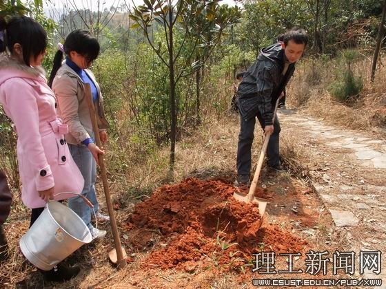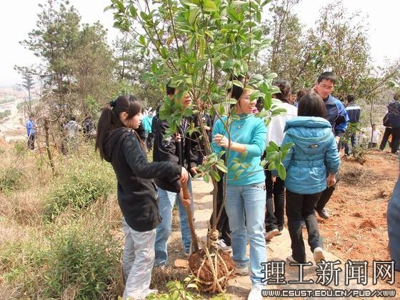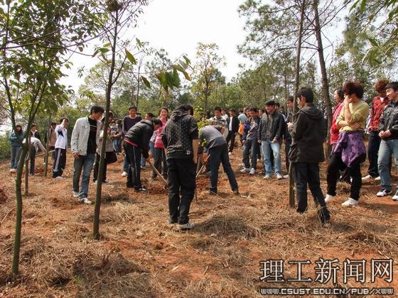 中午十二点,在文化广场举行简单的启动仪式后,294名青年志愿者奔赴云霞山。青年志愿者到指定地点分发树苗和工具之后,挥锹动铲,挖坑、取树、栽树、培土、浇水,一项项程序有条不紊。在近一个半小时里,志愿者欢歌笑语、热情高涨。共栽树苗100棵,为云霞山增添了春意,美化了校园。