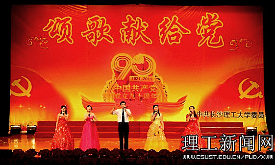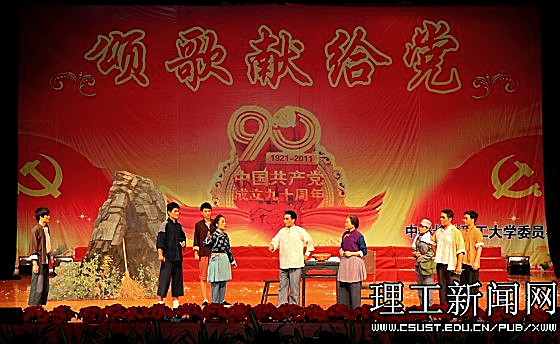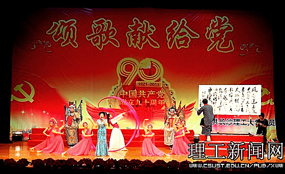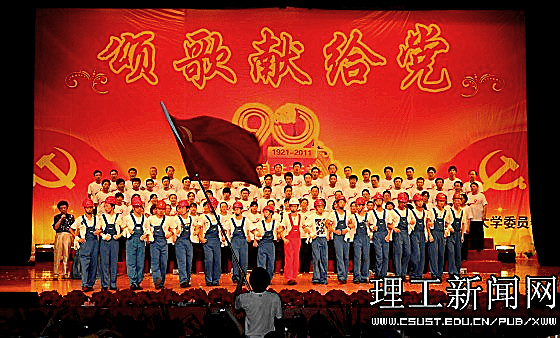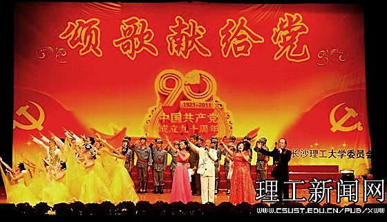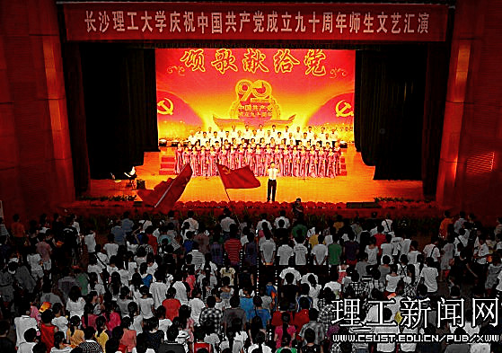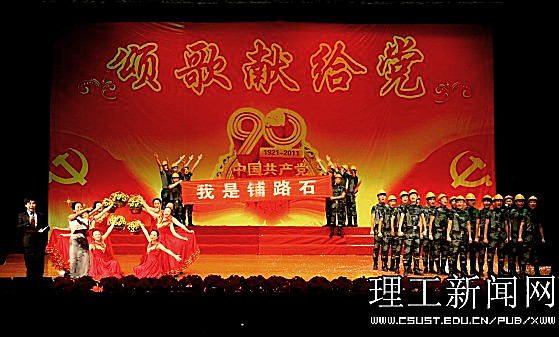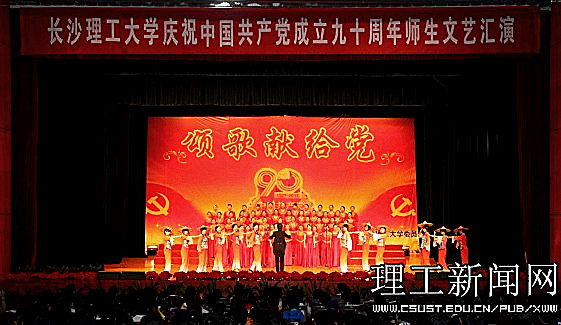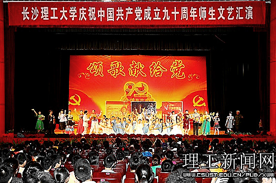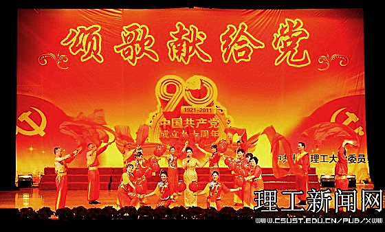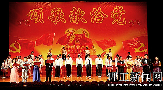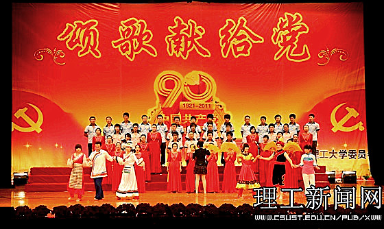 一首首红歌回味悠长,一段段旋律激越昂扬。在近三个小时的演出中,1000余名师生同台表演,用大合唱、歌舞、三句半、诗朗诵等多样的艺术形式展现了共产党90年的风雨历程,展现了共产党90年的光辉历史,传递出对党的真挚情感和由衷的祝福;用激情和汗水为我们伟大的党、伟大的祖国谱写一曲振奋人心的贺岁乐章。