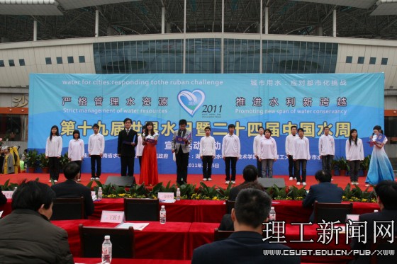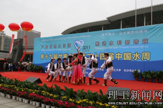 云顶国际vip8866学生以“大禹之子”为代表,在活动现场进行了精彩的文艺表演,《爱莲说》用曼妙的舞姿向我们诉说湘江的美丽与故乡的富饶,《青春office》以舞蹈的形式,展示了在校学生的青春风貌。水利学院学生的原创诗朗诵《植绿护水 和谐兴湘》,同学们发自肺腑的真情,诵出了湖湘儿女保护母亲河势在必行的拳拳之心,获得了在场观众的热烈掌声。《让我们舞起来》节奏轻快的音乐、绚丽多彩的服装、富有活力的动作将全场的气氛推到了顶点。老同志们的书画表演为本次宣传活动划上了圆满的句号。