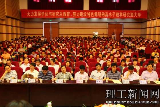 郑健龙校长作了题为《转变观念 攻坚克难 努力开创云顶国际vip8866学位与研究生教育工作新局面》的工作报告。报告从四个方面回顾了“十一五”以来云顶国际vip8866学位与研究生教育取得的成绩,总结了四点经验和体会:特色优势学科建设是学位与研究生教育的发展基础;高水平的科研项目和成果为学位与研究生教育发展提供了有力保障;高水平的导师队伍建设是学位与研究生教育的重要抓手;学位与研究生教育是学校向高水平大学转型发展的强大支撑。报告还客观分析了目前云顶国际vip8866学位与研究生教育工作存在的问题和差距以及“十二五”期间云顶国际vip8866学位与研究生教育面临的形势,提出今后一个时期学校学位与研究生教育工作的中心任务是:扩大规模、调整结构、保证质量、规范管理,明确了加快发展学位与研究生教育的主要思路。要求全校上下在观念和管理上实现四个“转变”:一是从研究生招生、培养和学位授予体系以二级学科为主转变为以一级学科为主;二是从研究生教育以学术型为主转变为以学术型和专业型并重;三是从依赖学校拨款培养研究生转变为导师用科研经费资助研究生培养;四是从招生计划按上年度招生基数分配转变为依据科研经费、科研项目的总量与质量安排招生计划。最后,郑校长从加强学位点建设、加强导师队伍建设和管理、扩大研究生规模等五个方面提出了加快学位与研究生教育发展的具体举措。