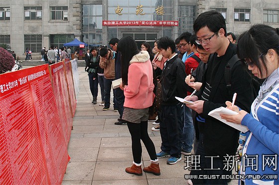 招聘会举办之前,学校招生就业处和各学院共向用人单位发出邀请函2000余份,包括中国平安财产保险股份有限公司、招商银行、远大科技集团有限公司、中交、中建、中铁下属公司,三一集团、二十三冶、湖南千金湘江药业股份有限公司等在内近300家省内外用人单位应邀来校参加招聘会,提供就业岗位2500余个,涵盖交通、土木、电力、机械、财经、物流、商贸、电子及通讯等领域,吸引4000余名毕业生入场应聘。