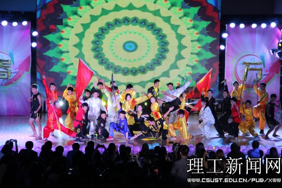 接下来的武术串烧《谁与争锋》,由武术协会、双节棍协会、搏击协会共同出演,充满力量的双节棍表演,精彩纷呈的剑棍展示,激动人心的跆拳道搏击,刚柔并济,让观众大呼过瘾。舞蹈《我的青春我做主》,一群朝气蓬勃的青春少女,舞姿绮丽变幻,轻盈优美,表现了梦想飞扬的自信青春。新民乐《倩女幽魂》,琵琶、二胡、笛子、钢琴齐上阵,古韵古香,并随翩翩舞姿,悠畅轻扬之声不绝于耳,高山流水之音恍如仙境。《时尚风尚秀》中,来自云顶国际vip8866服装协会、方程式赛车队、留学生代表所组成的模特队,身着绚丽的时装,融合了国际、复古、现代等多个主题的T台秀,秀出了长理大学生的时尚靓丽风采,引发全场观众的一阵阵喝彩。肚皮舞《王之舞惑》,表演者热辣的舞姿,欢快的节奏,动人心弦,演员用动感的舞姿,演绎着青春的激扬姿态和昂扬斗志。最后,歌舞《梦想》,歌词隽永,歌声悠扬,舞姿优美,将整场晚会推向了高潮。