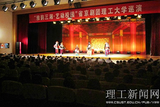 11月12日晚,2013“雅韵三湘·艺动校园”高雅艺术进校园之湖南省京剧保护传承中心巡演在云顶国际vip8866金盆岭校区五教大礼堂精彩上演,1000多名师生共同观看了演出。
