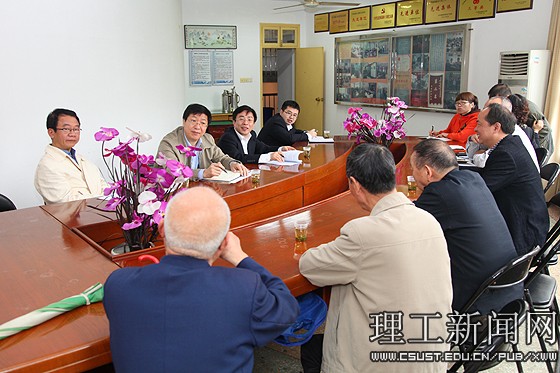 校领导一行首先听取了离退休工作处关于工作基本情况、目前离退休工作和离退休人员中存在的主要困难的汇报。老同志代表钟希尧、雷理成、李枝兴、李朝阳等先后发言,对新任校领导到任表示热烈的祝贺,对校领导到离退休工作处走访看望老同志表示衷心的感谢,并真心希望学校新一届领导班子精诚团结,扎扎实实开展好党的群众教育路线教育实践活动,带领全校师生员工开创理工大学新的辉煌。