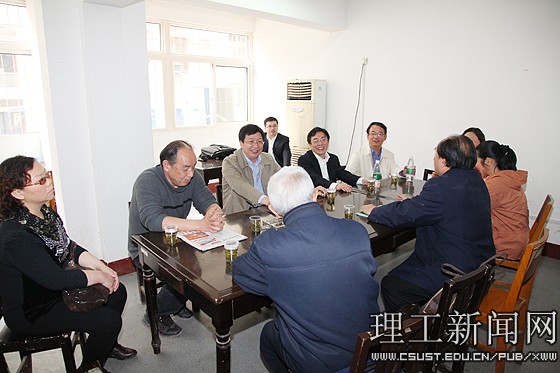 随后,校领导一行到老干活动室亲切看望正在学习和健身的离退休老同志,与他们亲切交谈,并专程到侯家塘校区实地考察,和部分老同志进行了座谈。