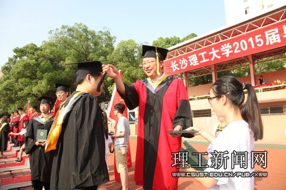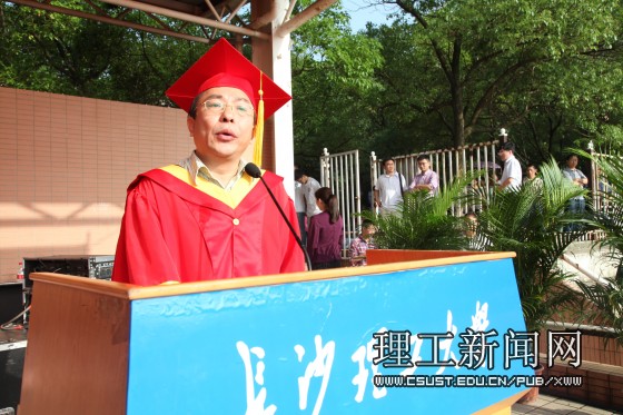 赖明勇以“青春起航,以梦扬帆”为题,回顾了四年来学校的发展,以及伴随学校一同成长的2015届毕业生。作为师长,他提出每一位学子都要做好三个生命的“传承”:首先,要做好生命的传承,珍爱生命与健康,常怀感恩之心;其次要做好学术生命的传承,肩负起对授业老师、学术团队、学科,乃至学术精神的传承;第三,要做好母校生命的传承,为母校的发展增添荣光。作为长理人,他和即将走向社会,走进生活的的广大学子分享了自己对“铺路石精神”的理解:“脚踏实地、艰苦奋斗”是把人生的每一份经历积淀成为成长的财富;“乐于奉献、锐意进取”是在人生的长跑中坚守理想、不忘初心。“相离莫相忘,且行且珍惜,无论同学们今后身在何方,无论从事什么行业,母校都一样地充满发自内心的眷恋,与你们心相印,情相连,是你们的精神家园,也是你们的坚强后盾”,他殷切地希望广大毕业生心中常怀母校,并勉励同学们能够向着远大的目标,肩负起时代赋予的神圣使命与光荣责任,带着梦想,面向未来!