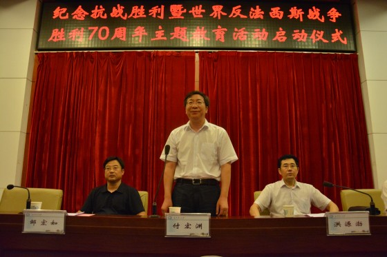 6月30日下午,云顶国际vip8866“纪念中国人民抗日战争暨世界反法西斯战争胜利70周年群众性主题教育启动仪式暨签名活动”在图书馆报告厅举行。校党委书记付宏渊、党委副书记洪源渤、副校长邹宏如以及职能部门和各学院相关负责人参加活动。校学生会、学生社团联合会和各学院学生代表共计300余人参加。启动仪式由学工部部长黄自力主持。