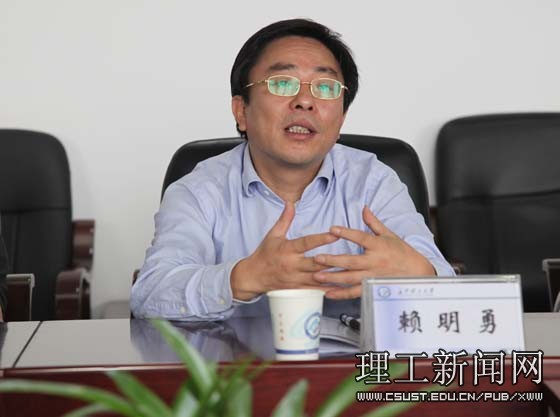 赖明勇代表学校对他们的到来表示热烈欢迎,重点介绍了学校的人才资源优势、学科专业特色、产学研合作开展情况,并就如何与益阳市赫山区进一步深化产学研合作工作进行指导。