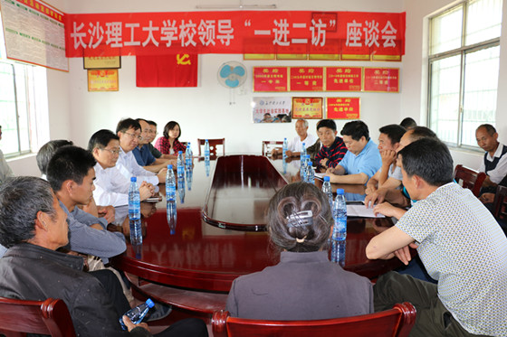 为认真贯彻落实省委办公厅《关于在“三严三实”专题教育中开展领导干部“进村入户,访困问需,访贫问计”活动的实施方案》,10月21日,校党委书记付宏渊,副校长黄立宏、蒋昌波,校党委委员、组织部部长付嫦娥一行驱车来到学校驻村帮扶点——新宁县回龙寺镇周家岭村开展“一进二访”活动。邵阳市政府副秘书长杨一丁,新宁县委常委、副县长杨文国以及相关单位负责人陪同走访。