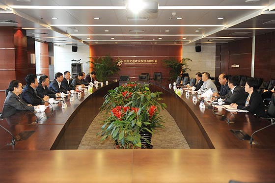 10月28日下午,校党委书记付宏渊,副校长谈传生、蒋昌波走访了中国交通建设股份有限公司,就深化企校合作等事宜与中国交建总裁陈奋健等进行了友好会谈。党政办、校友合作处、招就处、水利学院、继教学院负责人,中国交建总裁助理、港航疏浚事业部总经理、中交疏浚集团董事长周静波以及公司办公厅、人力资源部、中交路桥、中交疏浚集团相关负责人参加了会谈。