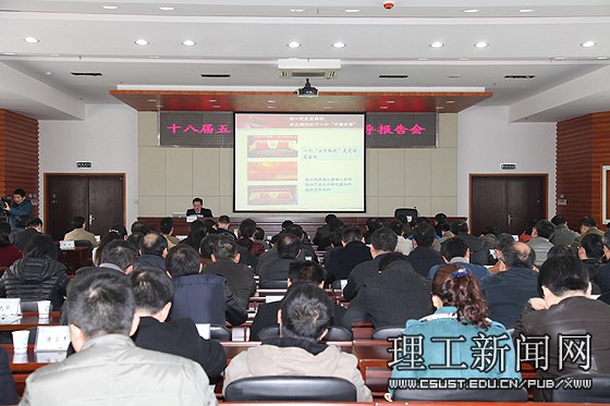 12月1日上午,湖南省委宣讲团党的十八届五中全会精神报告会在云顶国际vip8866一办九楼会议室举行。省委宣讲团成员、省委讲师团副主任邓清柯作宣讲报告。全体在家校领导、副处级以上干部聆听了报告。报告会由校党委副书记邹宏如主持。