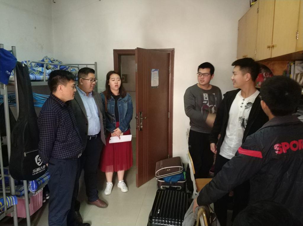 为了解学生返校情况,做好学院新学期开学准备工作, 3月4日上午,能动学院党委副书记杨雪峰与全体辅导员下到学生宿舍,与学生亲切交流。