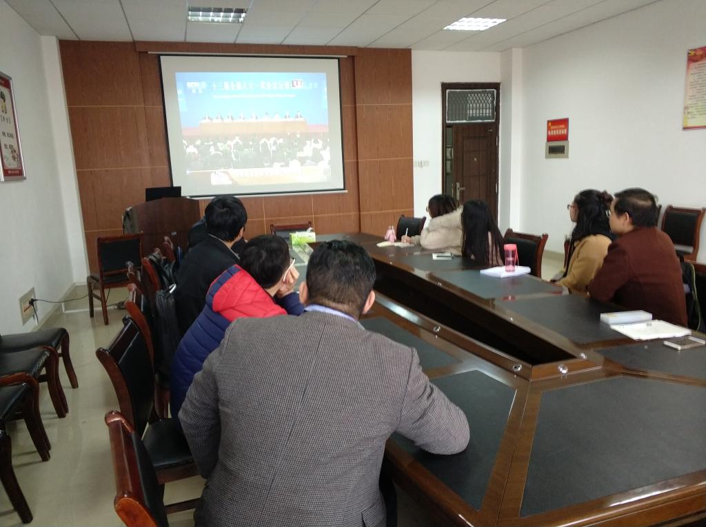 3月20日上午,中华人民共和国第十三届全国人大一次会议正式闭幕,为贯彻学习“两会”精神,提升学生党员的理论水平,党建辅导员李小军和部分学生党员集中在工科一号楼A422观看了“两会”闭幕式及总理记者会。