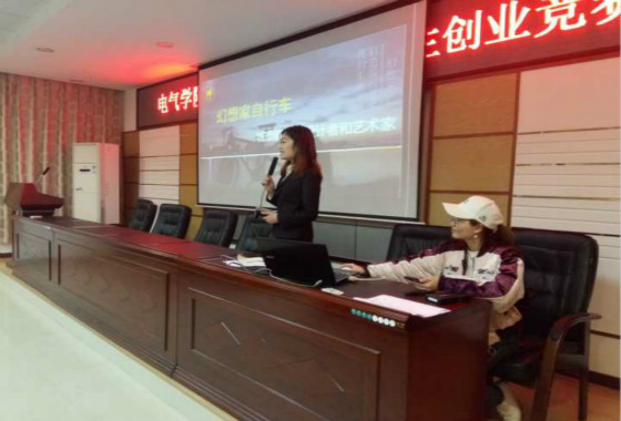 本次比赛共有14组项目参与,分为两个环节:环节一为项目主要负责人进行PPT展示并讲解;环节二为评委提问环节,评委会综合项目文本情况和答辩情况进行评分。在PPT展示环节,每位项目负责人都对本项目进行了详细的介绍,其中“小型无人机于微型四轴玩具的优化市场应用”项目组把产品实物带到了答辩现场,以达到更好的效果。在提问环节,陈颖强调要考虑创业的实际性,她针对不同项目组,对其薄弱处进行质疑,对好的创意和想法也给予了肯定。