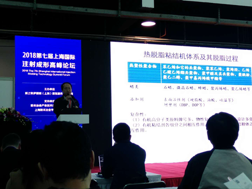 展会首日举行第七届上海国际注射成型高峰论坛,杨现锋作了主题为《陶瓷注射成型粘结剂体系对比研究》的演讲,分享了多年来在陶瓷注射成型领域的研究心得与经验。