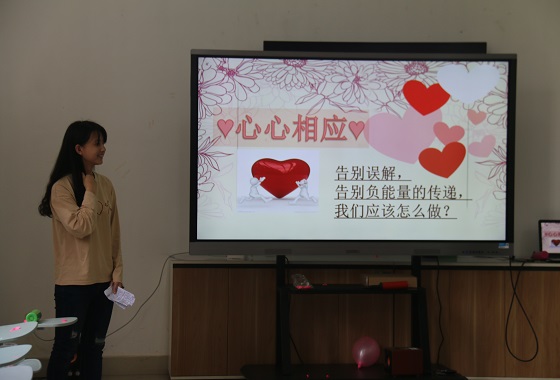 活动由朋辈心理部干事张森亭主持,旨在引导同学们识别并学会正确面对自身和周围的负能量,在紧张的学习与生活中达到减压目的,促进身心健康发展。此次活动设置五个部分,活动的第一项是“嘘,这就是秘密”,每位参加人员在纸上写下最近让自己感受很负能量的事情,折好后放在事先准备好的手机袋里。在在接下来的活动中,主持人将所有参与分为四个小组,以小组为单位,完成活动。在“不定点爆破”环节里,小组成员一起合作在单位时间里完成吹气球,不用手脚挤爆气球,挤爆气球数量最多的小组获胜。在“心心相应”环节,一个同学比划一个同学猜题,并以接龙方式在小组中传递信息,最后猜出与答案最为接近且用时最少的小组获胜。在“出谋划策”环节,主持人在所有分组中选取三组进行。每组成员根据工作人员给出的一个情景(网络上的情景剧),进行分析,找到解决问题的具体方法,并由小组成员进行情景再现。在最后的“我来帮你”环节,每个人在第一个环节准备的手机袋里随机拿一张纸条,阅读纸条,并在纸条上写下对他的暖心回复并提出恰当的解决办法;并由参与者自愿分享拿到纸条的内容以及想法,相互交流。