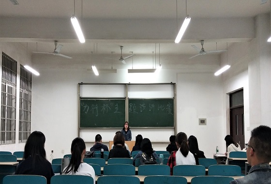 4月15日,经管学院在文科楼E101、102举办“力行杯”演讲比赛。本次比赛由朝闻道协会导师张文梁、经管学院学习部部长冯泓元、副部长罗科威、16分会部长李舒婷以及十月诗会一等奖获得者梁泽武担任评委,经管学院部分学生参与了本次比赛。
