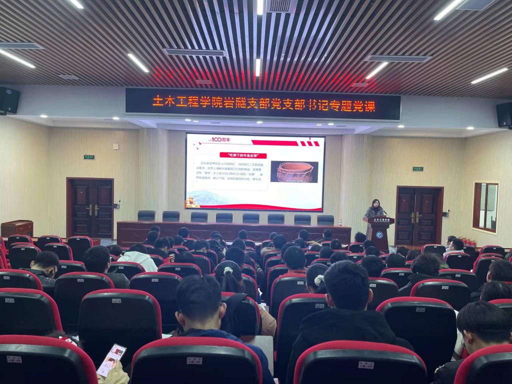 11月15-12月30日,土木学院各学生党支部开展支部书记上党课系列党史学习教育。各党支部围绕党史知识、十九届六中全会精神开展了支部书记专题党课。岩隧党支部书记刘文成以《从党史人物看党性修养》为主题,结合在中国共产党党史中的重要人物事迹,用党史人物的故事揭示出中国共产党人的无私奉献、一心为国的优秀品质,她给在场的党员阐述了党性修养的重要性与必要性,同时为党员们提供了提升自身党性修养的具体建议。桥卓党支部书记龙承运重点围绕《关于<中共中央关于党的百年奋斗重大成就和历史经验的决议>的说明》对支部党员进行了领学。他强调“广大青年党员一定要牢固树立用党的创新理论武装头脑的政治自觉,努力做好党的十九届六中全会精神宣传的主攻手,在学习工作中践行党的十九届六中全会精神”。桥梁党支部书记李小军在专题党课中强调,“最好的学习贯彻就是知行合一,把会议精神融入学习生活中,严格要求自己,提高自身能力,为中华民族伟大复兴贡献自己的力量。”