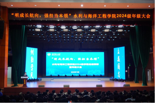 10月24日晚,水利学院在云塘校区大会堂召开“明成长航向,强担当本领”——2024级学期总结表彰暨年级大会,学院党委副书记银波、2024级年级辅导员李永睿出席,2024级全体本科生参加。