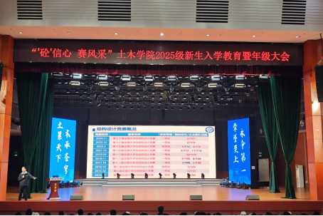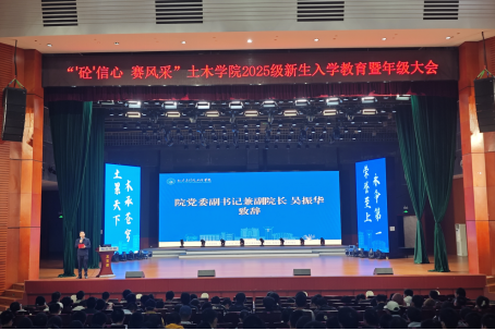 10月27日晚,土木学院于云塘校区大会堂举行“‘砼’信心 赛风采”2025级新生入学教育暨年级大会。院党委副书记兼副院长吴振华,副院长付果,新生辅导员及全体新生参加。大会由年级辅导员龚丁主持。