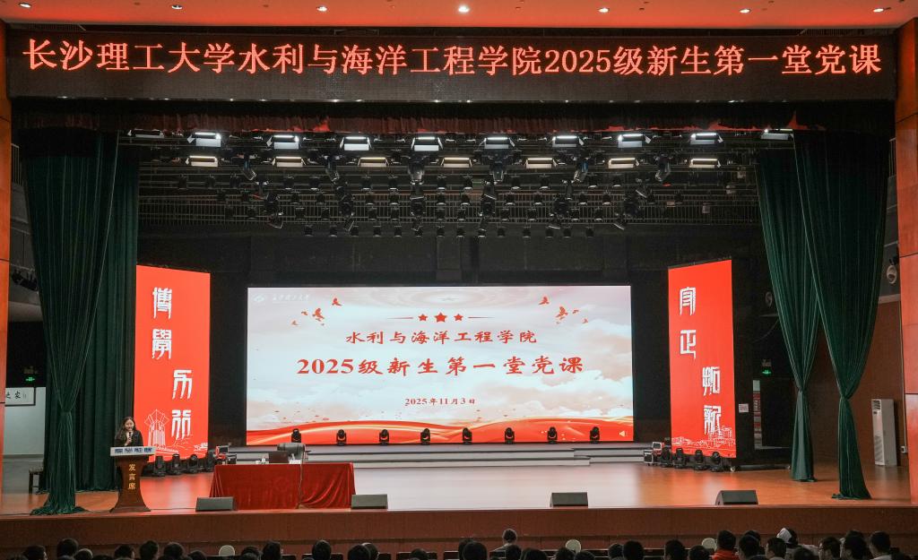11月3日晚,水利学院在云塘校区大会堂举行2025级新生第一堂党课。学院党委书记喻玲娜为896名本研新生授课,学院辅导员王祎和全体新生参加。活动由2025级辅导员王正博主持。