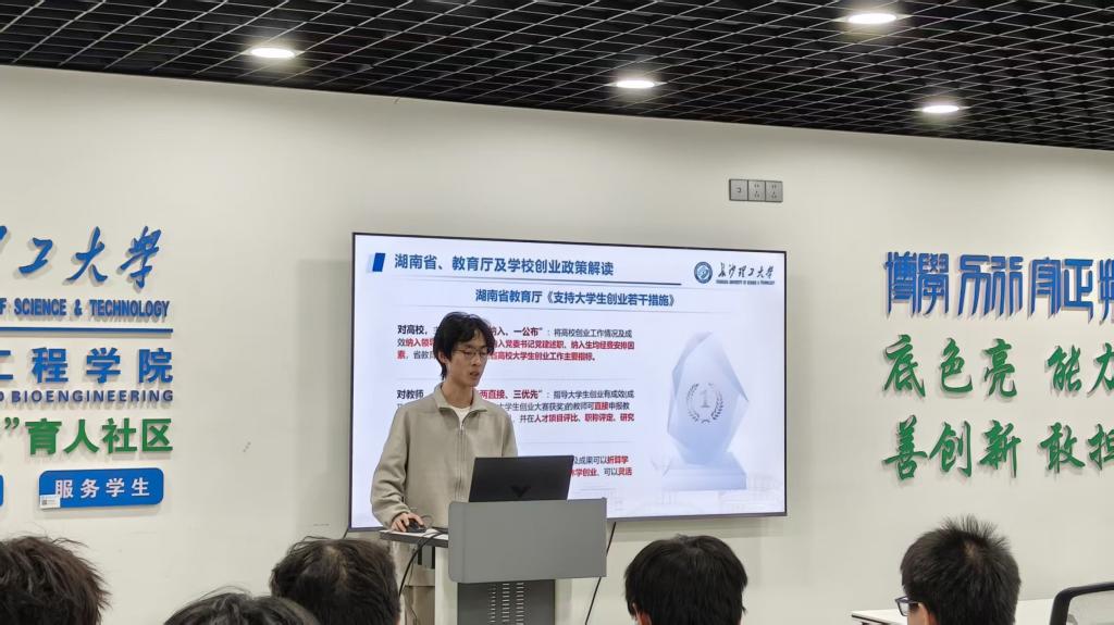 班会上,各班系统解读《湖南省大力支持大学生创业若干政策措施》中的“七个一”举措,详细阐释湖南省教育厅及学校相关政策中的“两直接”“三优先”“两配套”“六可以”内容,并结合食品专业特色,重点梳理与食品研发、品牌孵化相关的政策扶持方向。此外,各班还介绍了第二届“金种子杯”大学生创业大赛方案及学校创新创业园支持政策,鼓励学子结合食品行业发展趋势申报创业项目。