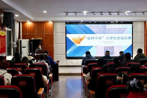 11月18日,化学与医药工程学院2025年“金种子杯”大学生创业大赛院级选拔赛在云塘校区工科三号楼B319报告厅举行。学院党委副书记李家春、学校创业就业指导处李小军、学院辅导员张航担任评委。吸引了全院近百名学生到场观摩学习。