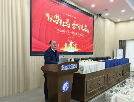12月3日中午,经管学院于金盆岭校区经管大楼100报告厅举行2026届考公考研送祝福活动,院长彭新宇,副院长王治、尹筑嘉、何昊,辅导员何涛、叶鑫、何艳芝参加活动。活动由学院党委副书记汪功伟主持。