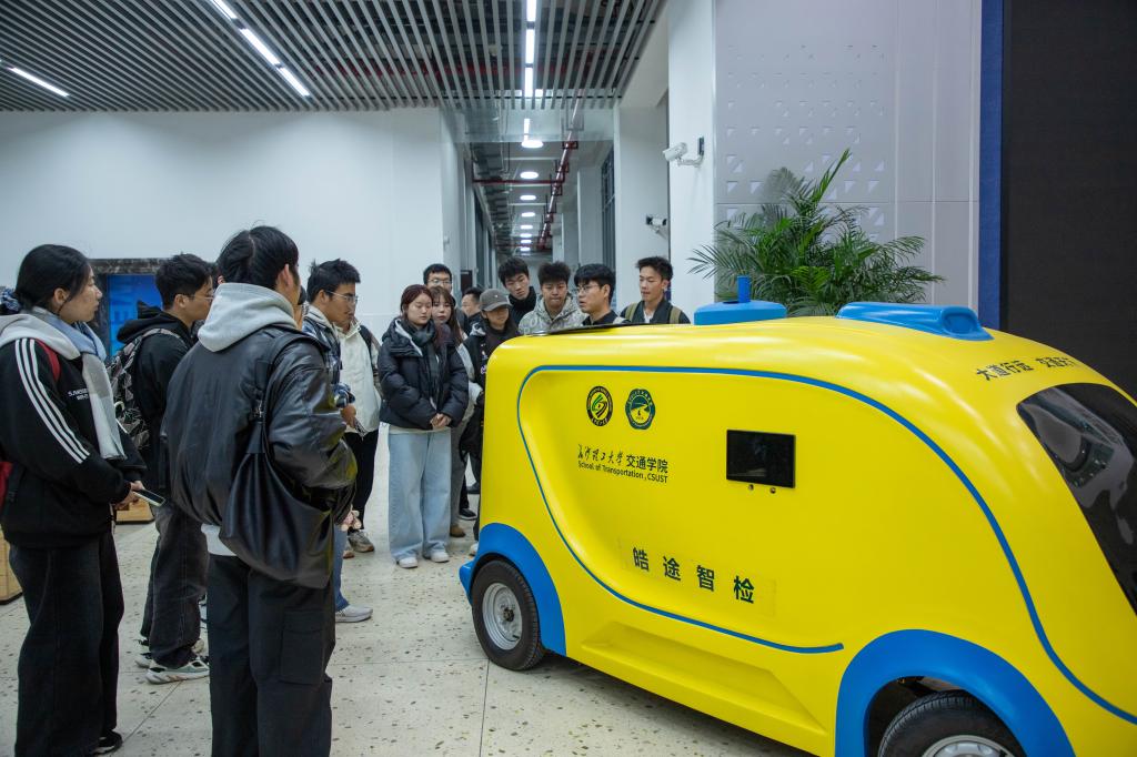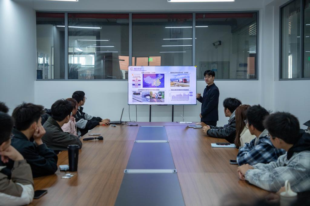 本次论坛分为分享与参观两部分。论坛伊始,王成博向同学们介绍他的创业项目——团队自主研发的“路面压实质量智能检测车”,该设备可在施工中同步检测压实度、温度等数据,达到了国际领先水平,相较传统事后钻孔取样法,大幅提升效率与精度,节约时间和资金成本。他从项目的理论突破、三代测试车辆迭代历程,以及项目斩获国内大奖、获国际专家认可的成果,和自身创业经历等几个方面向同学们阐释了创业需持续思考、并非一蹴而就的道理。随后,同学们在王成博的带领下近距离参观测试车辆,详解设备原理与零件构成,并走进由他创办的长沙皓途交通科技有限公司在卓越工程师学院的办公区域,让同学们深刻体会到创业的艰辛与团队协作的重要性。