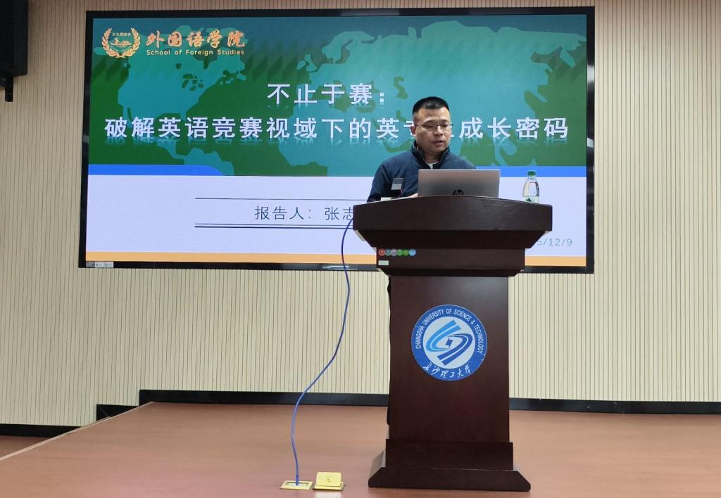 12月9日晚,外国语学院举办“不止于赛:破解英语竞赛视域下的英专生成长密码”专题讲座。讲座由学院竞赛办主任张志武主讲,旨在帮助英专生厘清竞赛与专业成长的关联,以赛促学、以赛赋能,将赛事经历转化为核心竞争力。