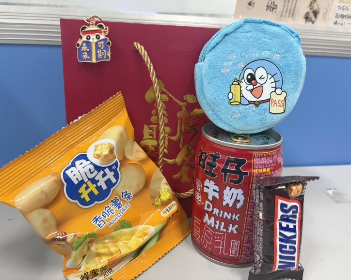 学院为全体考研学子精心准备了满载心意的“金榜题名”礼物袋,袋中每样物品都承载着美好期许:“未来可期”主题钥匙扣与钥匙包上的“高分喷雾”字样,寄托了学院祝愿大家考试顺利、前程似锦的美好期待;士力架可帮助快速补充能量,让大家以饱满状态应对高强度考试;脆升升薯片取“顺利升学”之意,祝愿学子们在考研这场战役中顺利跨越分数线、稳步迈向目标院校;旺仔牛奶则寓意好运常伴。