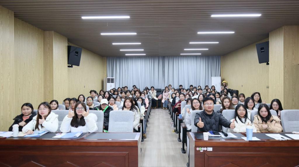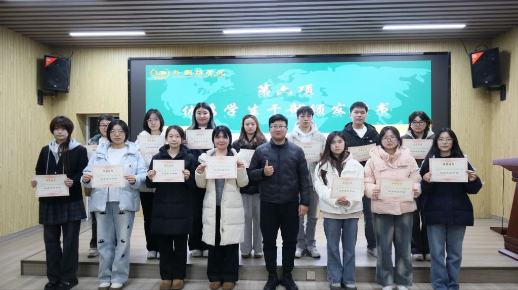 为全面总结本学期团学工作成果,科学谋划下学期工作重点,1月12日晚,外国语学院团委学生会在金盆岭校区3号教学楼229报告厅召开本学期工作总结大会。学院党委副书记周芳、团委书记郭恒、全体团学干部及各学生协会负责人齐聚一堂,共同回顾过往,擘画新篇。