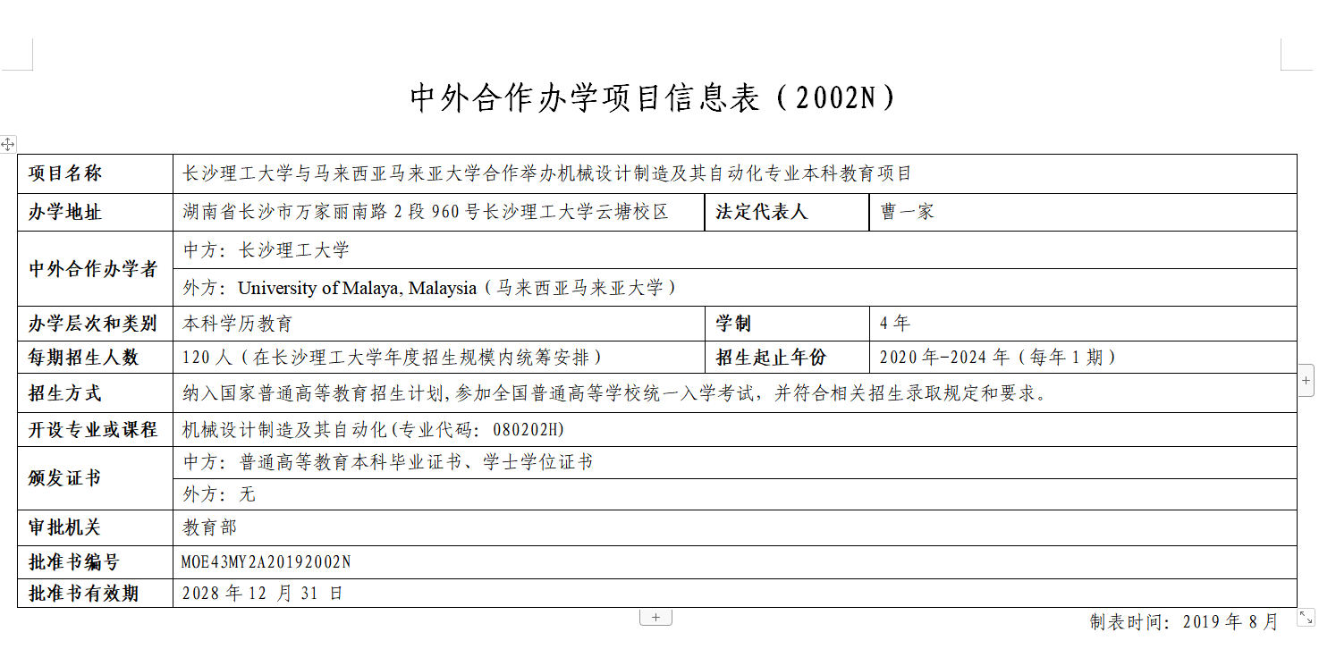 近日,教育部发文《教育部关于批准2019年上半年中外合作办学项目的通知》(教外函〔2019〕55号),共30个项目获得批准,云顶国际vip8866与马来亚大学(University of Malaya)合作举办的机械设计制造及其自动化专业本科教育项目位列其中,这是云顶国际vip8866继土木工程、电气工程及其自动化专业项目后从教育部获批的第3个中外合作办学项目,是云顶国际vip8866本科教育国际化办学上水平、上台阶的又一标志性成果。