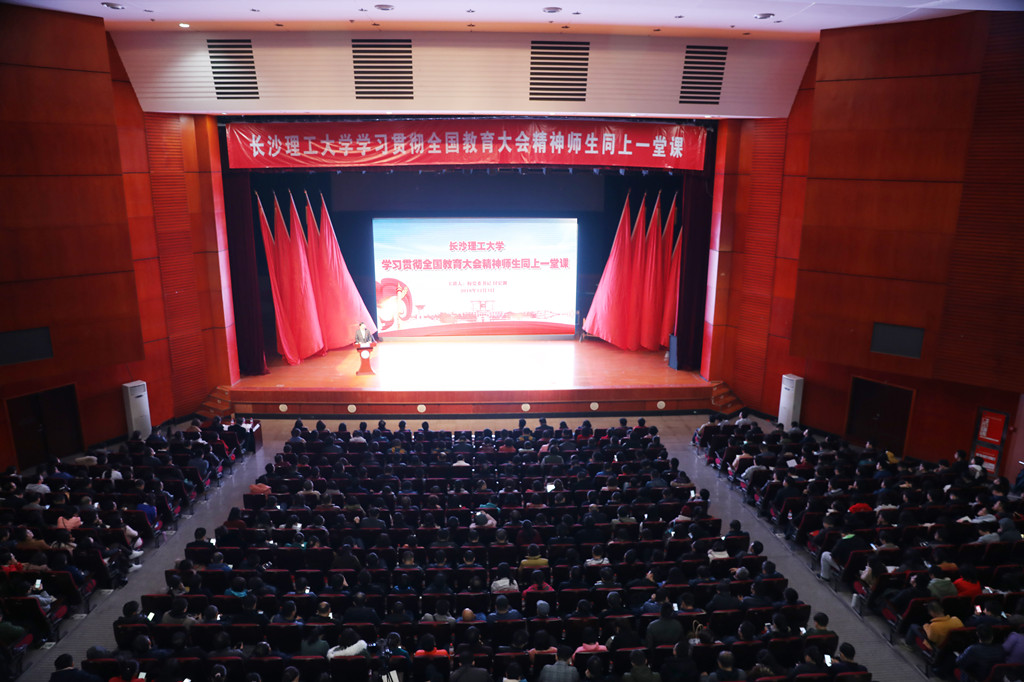 12月4日下午,云顶国际vip8866在云塘校区大会堂举行学习贯彻全国教育大会精神师生同上一堂课,校党委书记付宏渊以《落实全国教育大会精神,培育时代新人》为题,为广大师生授课。校党委副书记邹宏如主持,在家校领导和近1500名师生代表参加。