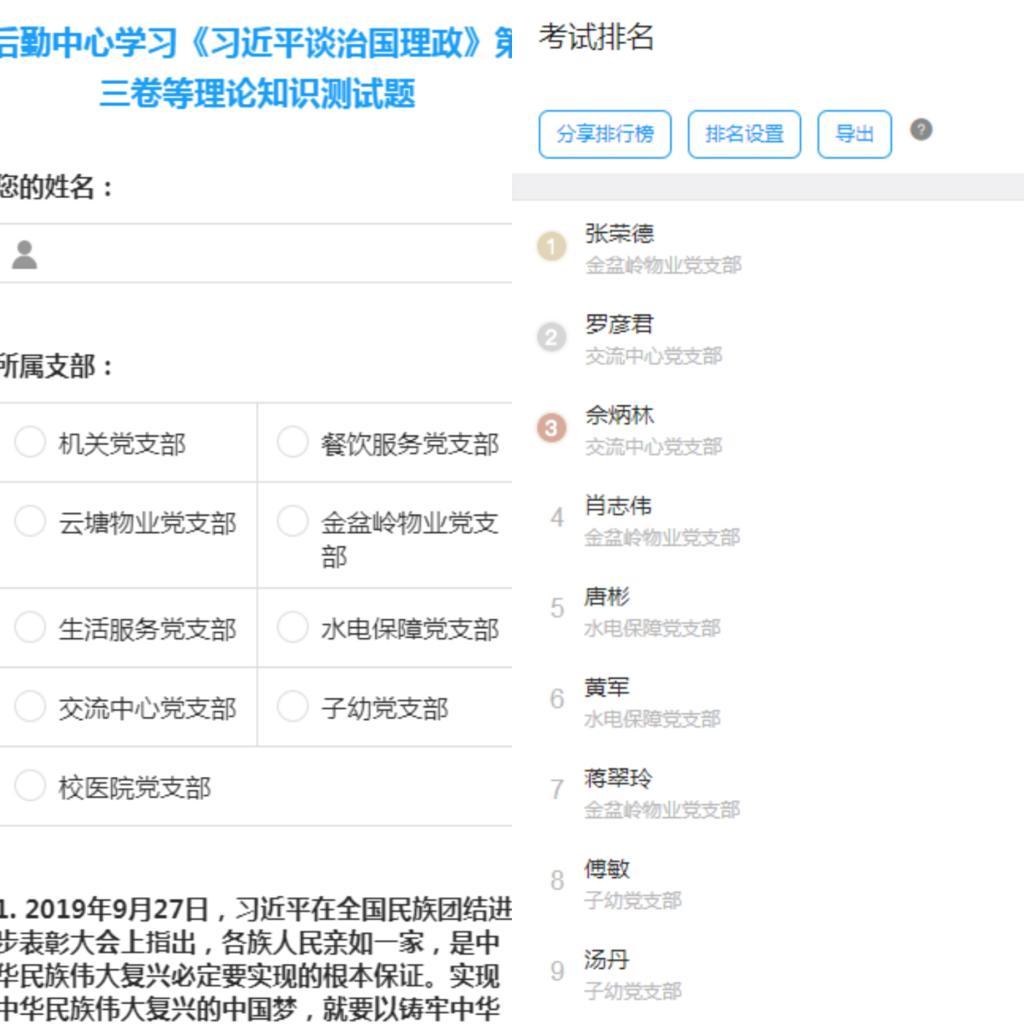 10月28日下午,后勤中心党委组织全体党员、入党积极分子利用手机软件进行《习近平谈治国理政》第三卷等理论学习“线上测试”。