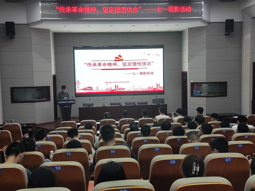 为庆祝中国共产党成立100周年,重温党的光辉历程,歌颂党的伟大成就,继承和发扬党的优良传统和革命精神,引导和动员广大学生把激发出来的爱国热情转化成为实际行动,做到学史明理、学史增信、学史崇德、学史力行,以昂扬姿态奋力开启全面建设社会主义现代化国家新征程。7月3日晚,交通学院于工科二号楼交通科技报告厅开展“传承革命精神,坚定理想信念”观影活动。此次活动参与人员共计69人,其中正式党员1人,预备党员8人。