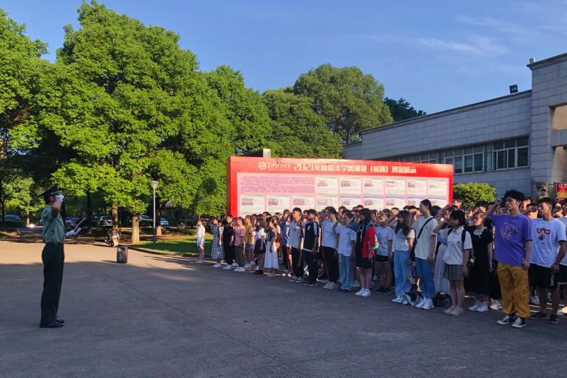 6月7日早晨,电气学院在金盆岭校区办公大楼前举行2020-2021学年第二学期“学党史、明信仰”升国旗仪式,电气学院2020级辅导员杨宸君及150名学生代表参加。