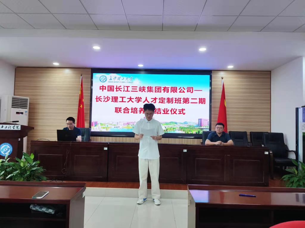 第二期三峡联培班学员代表李永祺回顾班级培训期间收获并代表第二期学员对校企领导的关心和教育表示感谢。