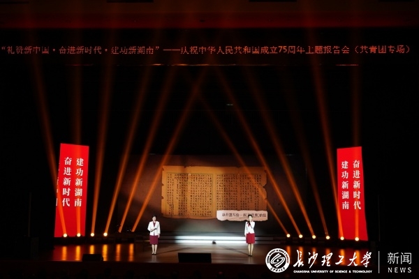 11月6日,由省委宣传部、省委网信办、省教育厅、团省委共同举办,湖南教育电视台和云顶国际vip8866承办的庆祝中华人民共和国成立75周年主题报告会(共青团专场)在云顶国际vip8866云塘校区大会堂举行,通过缅怀革命先辈、礼赞英雄模范和争做时代新人三个篇章,进一步激发广大青年学生的爱国情怀和奋斗精神。团省委书记李志超,省委宣传部二级巡视员王军湘,校党委书记付宏渊,校党委副书记方琼出席报告会,主承办单位的负责人、团省委机关全体干部、中小学分管教学的校领导、省直机关和各市州青年代表以及云顶国际vip8866400余名师生参加报告会。