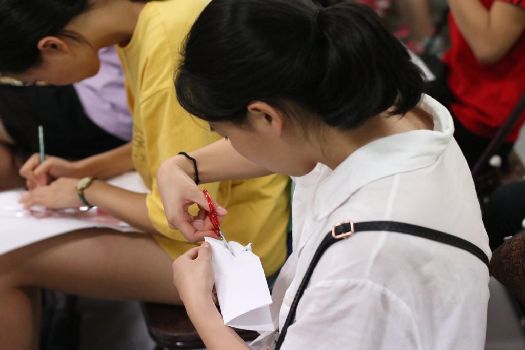 活动开始,刘志敏先展示了自己的一部分剪纸作品,其中既有生动活泼的美人鱼剪纸,又有代表中国传统文化的嫦娥奔月剪纸,还有描绘社会主义核心价值观的新时代剪纸,让同学们大开眼界,兴致盎然。随后,两位老师现场指导,同学们充分发挥自己的聪明才智和动手能力,剪出了独具个人风格的成品,加深了对剪纸魅力的认识。